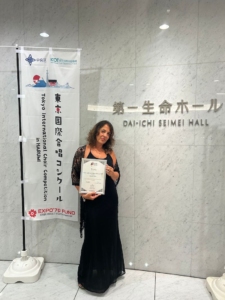 La composición fue interpretada en estreno mundial en julio en la capital japonesa, durante el concierto “The Prize-Winning Concert” en el marco del 7º Concurso Coral Internacional, en la sala Dai-ichi Seimei Hall, con la presencia de la propia autora: “Ha sido una enorme emoción para mí presenciar el estreno mundial de mi obra, interpretada por The Metropolitan Chorus of Tokyo, bajo la dirección del Maestro Ko Matsushita, compositor y director de fama internacional. Este premio representa mucho más que un logro artístico: es la confirmación de que la música puede tocar las conciencias, iluminar las fragilidades y hablar al corazón de las personas, estén donde estén”.
